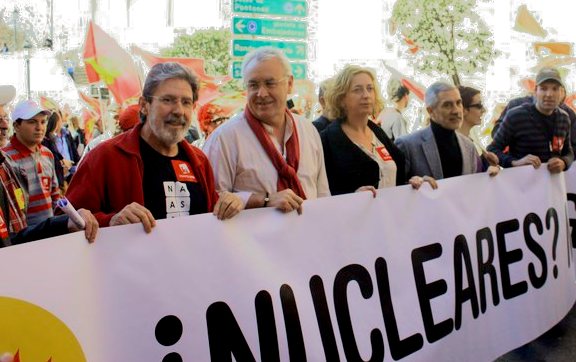 Por ello hoy, igual que ayer al manifestarnos en Garoña o como hicimos en los casos de Harrisbug y Chernobyl, como hemos hecho ante la serie de ‘incidentes’ producidos en las centrales de nuestro país, como siempre, seguimos diciendo ¡¡Nucleares, No¡¡ y seguimos pidiendo un calendario de cierre de todas las centrales nucleares y un plan energético que, en el plazo de 10 años, sustituya esta fuente energética por energías renovables, así como urgentes medidas de dinamización socioeconómica de las zonas afectadas cuya actividad productiva depende de una central nuclear para garantizar el futuro del empleo.