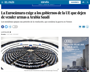 Bueno, pues ayer, los socialistas españoles, los de Pedro Sánchez, votaron en el europarlamento a favor de que se «exija a los gobiernos de la UE que dejen de vender armas a Arabia Saudí». La iniciativa de pedir a los países no vender más armas a Arabia Saudí ha salido adelante por 353 votos a favor, 217 en contra y 33 abstenciones. Los populares españoles, los de Pablo Casado, han dejado clara su posición a favor de seguir vendiendo armas a Arabia Saudí y han votado en contra de la demanda, mientras que los del PSOE la han apoyado.