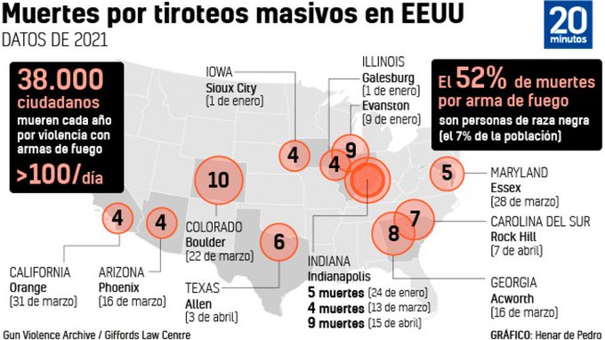Los datos (adjunto los que publica 20 minutos) señalan que más de 100 personas mueren al día por disparos de arma de fuego.