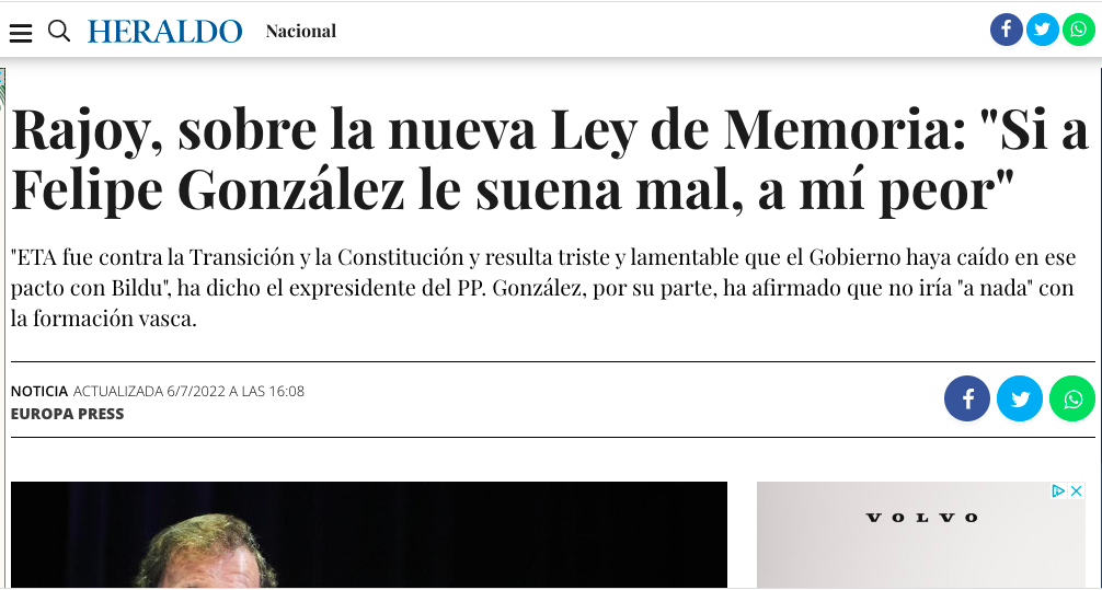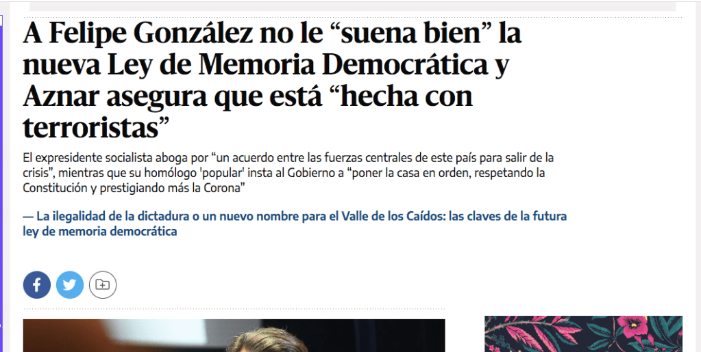 Resulta que el próximo día 14 de Julio se va a votar, y a lo que parece aprobar, la nueva ley de Memoria Democrática. Hay que reconocer que esta nueva Ley, en relación con la vigente de 2007 (gobierno de Zapatero), tiene avances importantes.