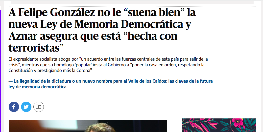 Ya dice mucho de lo que le queda por recorrer a este país, que la primera Ley de memoria democrática fue en 2007. Hacía ya 32 años que había muerto, con todos los honores, el dictador y ya llevábamos 29 años de democracia.